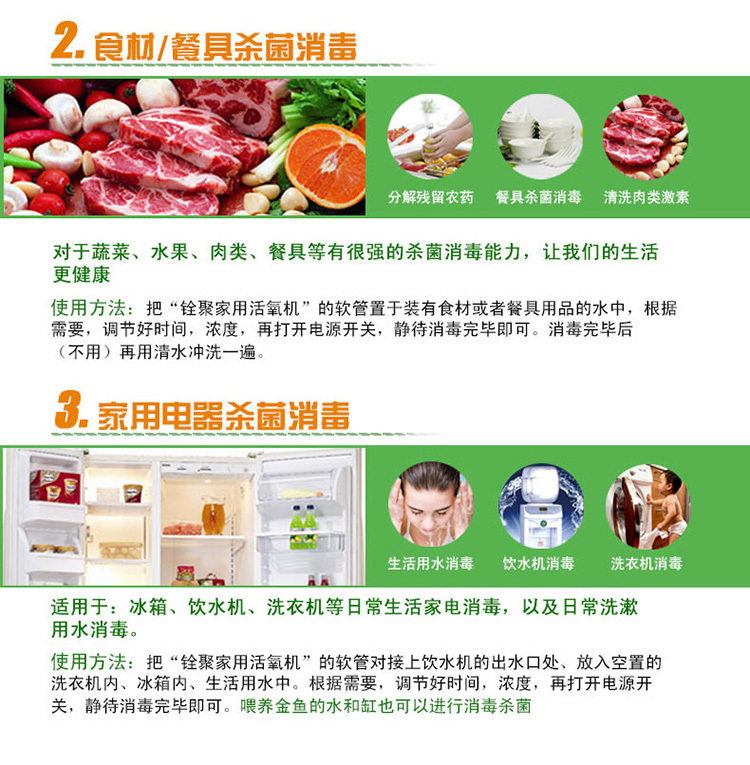 1、餐具消毒:清洗過后的餐具再用活氧水浸泡,可殺滅乙肝病毒,達到完全滅菌的作用,并無消毒劑殘留,是您健康的理想保障。
